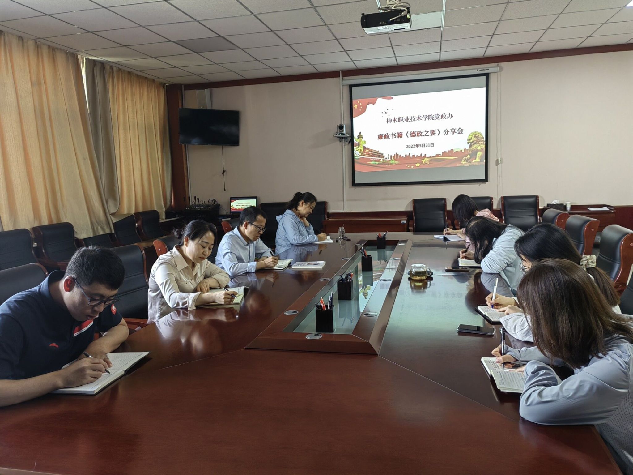 为了贯彻落实中共神木市纪委《关于印发<神木市新时代廉洁文化建设“十进”活动实施方案>的通知》精神,根据《365上市公司官网新时代廉洁文化建设活动实施方案》,5月31日,党政办组织召开廉政书籍阅读分享会。会议由李辽强主持,党政办全体参加。