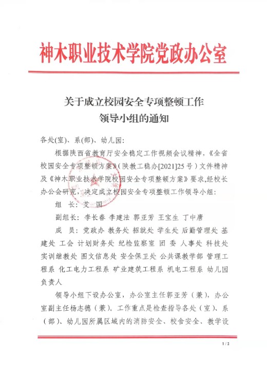 关于成立校园安全专项整顿工作领导小组的通知