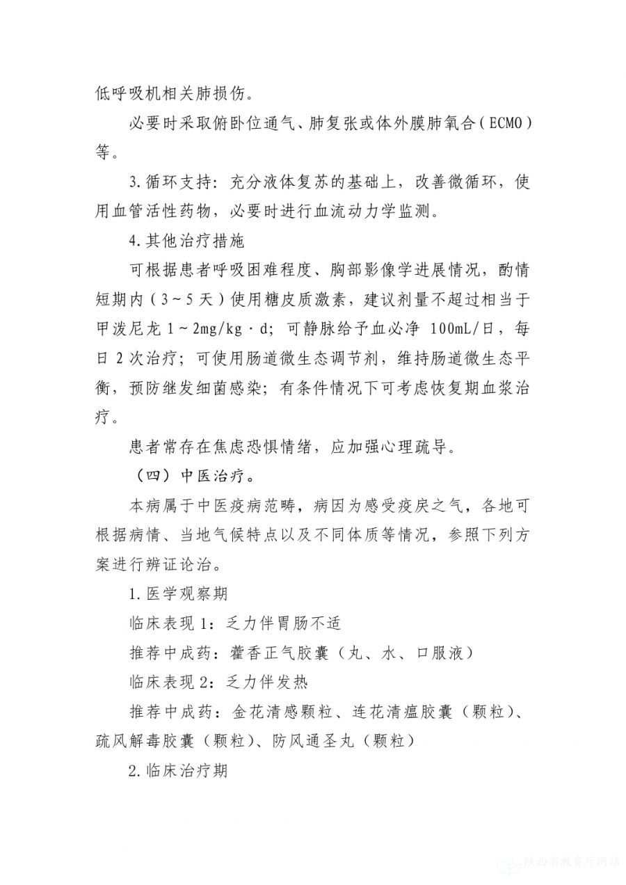 为进一步做好新型冠状病毒感染的肺炎病例诊断和医疗救治工作,我们组织专家对诊疗方案进行修订,形成了《新型冠状病毒感染的肺炎诊疗方案(试行第四版)》。现印发给你们,请参照执行。各有关医疗机构要在医疗救治工作中积极发挥中医药作用,加强中西医结合,建立中西医联合会诊制度,促进医疗救治取得良好效果。