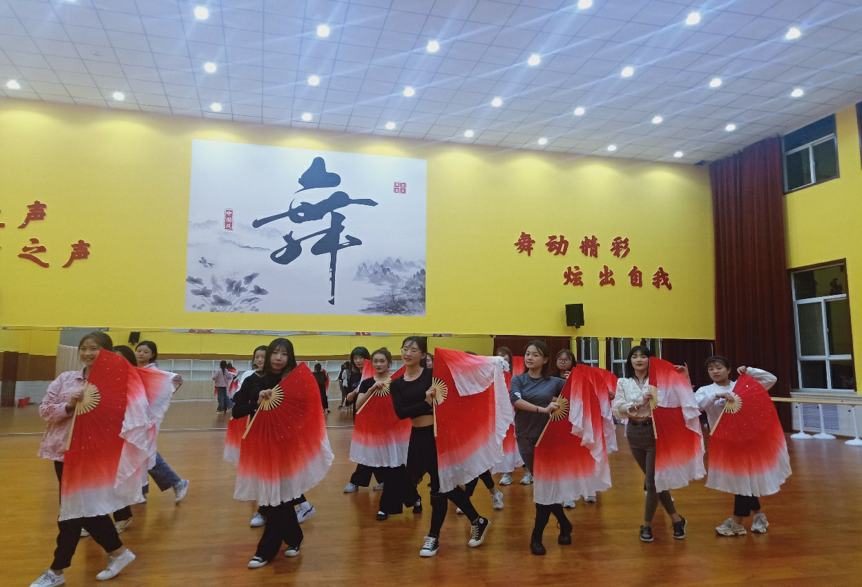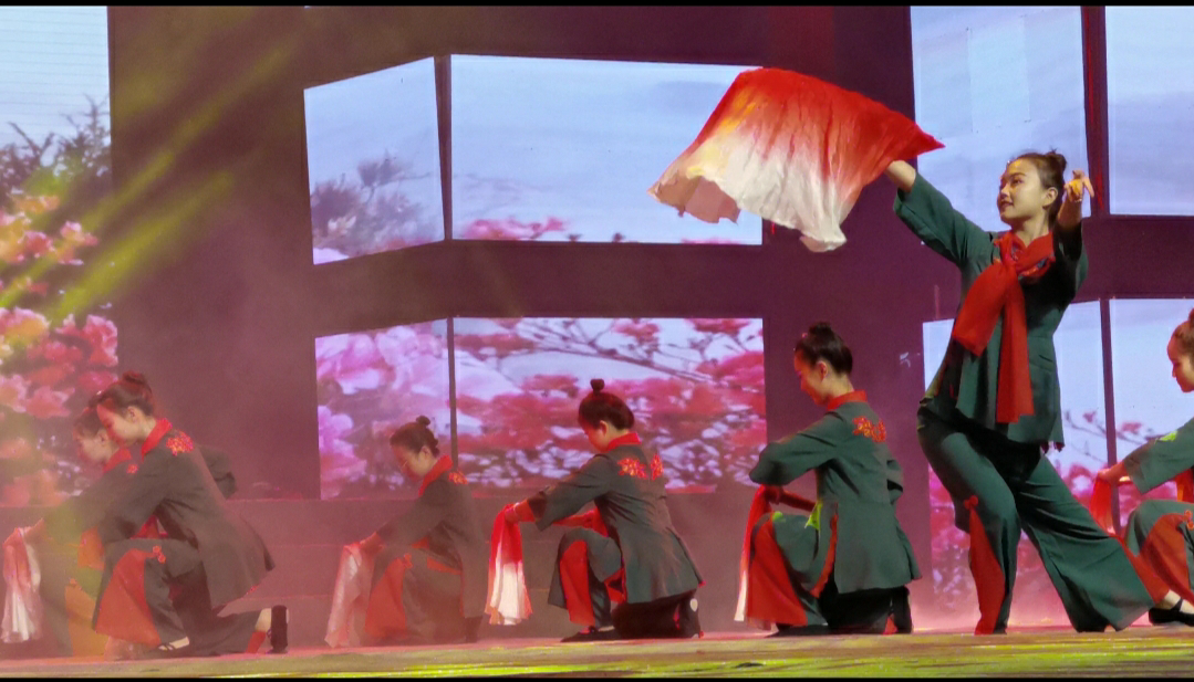 期间郝老师带领学生们进行了为期21天的舞蹈编排和训练通过舞蹈队形画面的更迭变化和不同速度不同幅度的舞蹈动作姿态造型的发展和情绪的深入从而完整的编排出具有较强的艺术感染力