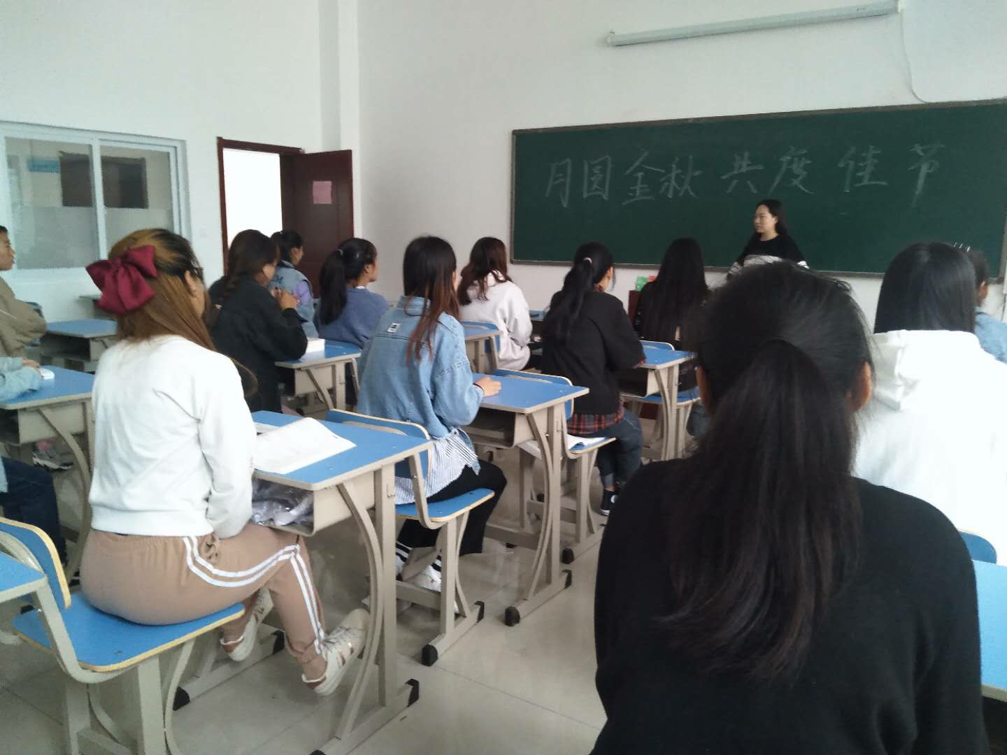 活动包括月饼DIY、师生互动小游戏、月饼派送、开展主题班会等。28日下午,校团委副书记司海燕、副主任刘树平分别作了热情洋溢的讲话,表达了学校以及系部对广大师生诚挚的问候和节日的祝愿,同时激励同学们再接再厉,奋发学习,为学校、系部的光辉未来做出更大的贡献,也为自己的美好明天增添美丽的色彩。