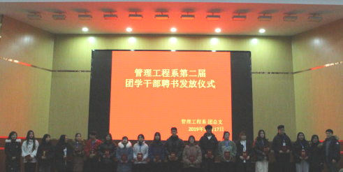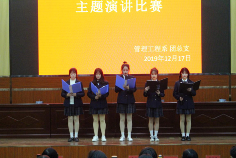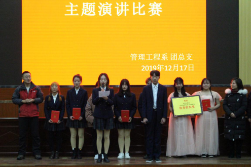 在管理工程系团总支和管理工程系学生会的组织下,来自18级、19级的8个班的代表参加了此次演讲比赛。担任此次比赛的评委老师有管理工程系副主任高彩琴老师、张彬蔚老师、李茂英老师、王小芳老师、张美琴老师。比赛的流程是首先由管理工程系团总支副书记张娜同学带领大家进行了宪法宣誓,其次选手们抽签进行比赛,接下来进行团学干部聘书发放仪式,最后我们进行了颁奖仪式。
