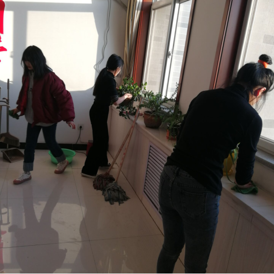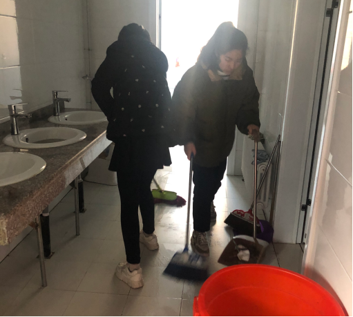 在进行了简单的任务分配后,各负责人组织学生对行政楼办公室和宿舍楼楼道进行了彻底清理。在打扫的过程中,大家发扬了不怕苦、不怕累的精神,相互配合,认真打扫。大家分工协作,显示出了饱满的热情和积极的状态,通过大家的努力,不仅对地面进行了打扫,而且对洗手池、着装镜、便池等进行了彻底的清理。