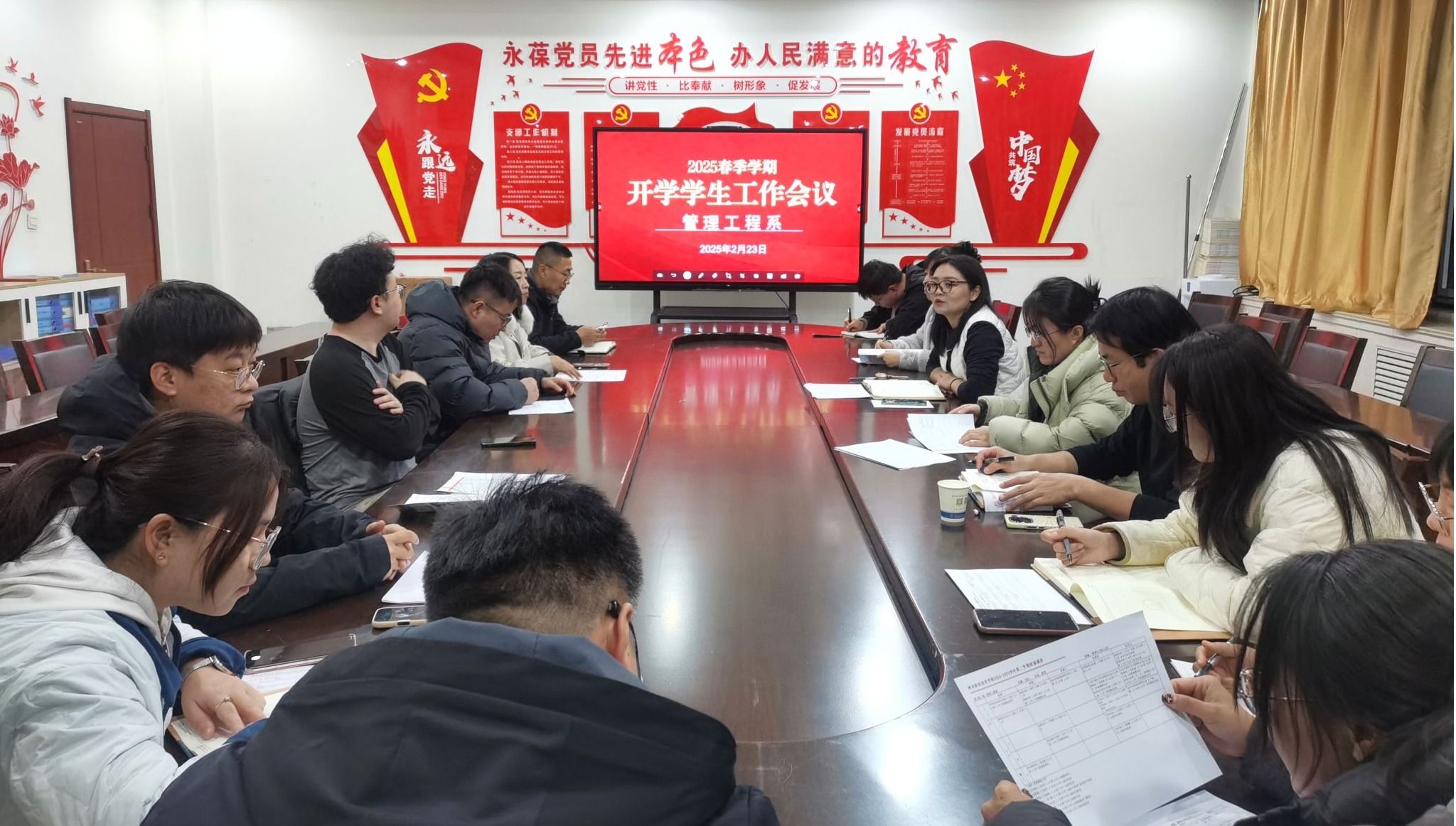 为扎实做好新学期学生管理与服务工作,确保开学各项工作平稳有序推进,管理工程系学工科于2月23日在2号行政楼2楼党员活动室召开2025年春季学期首次全体辅导员工作会议暨学生安全工作专项会议。会议由管理工程系副主任刘小毛主持,全体辅导员参加。