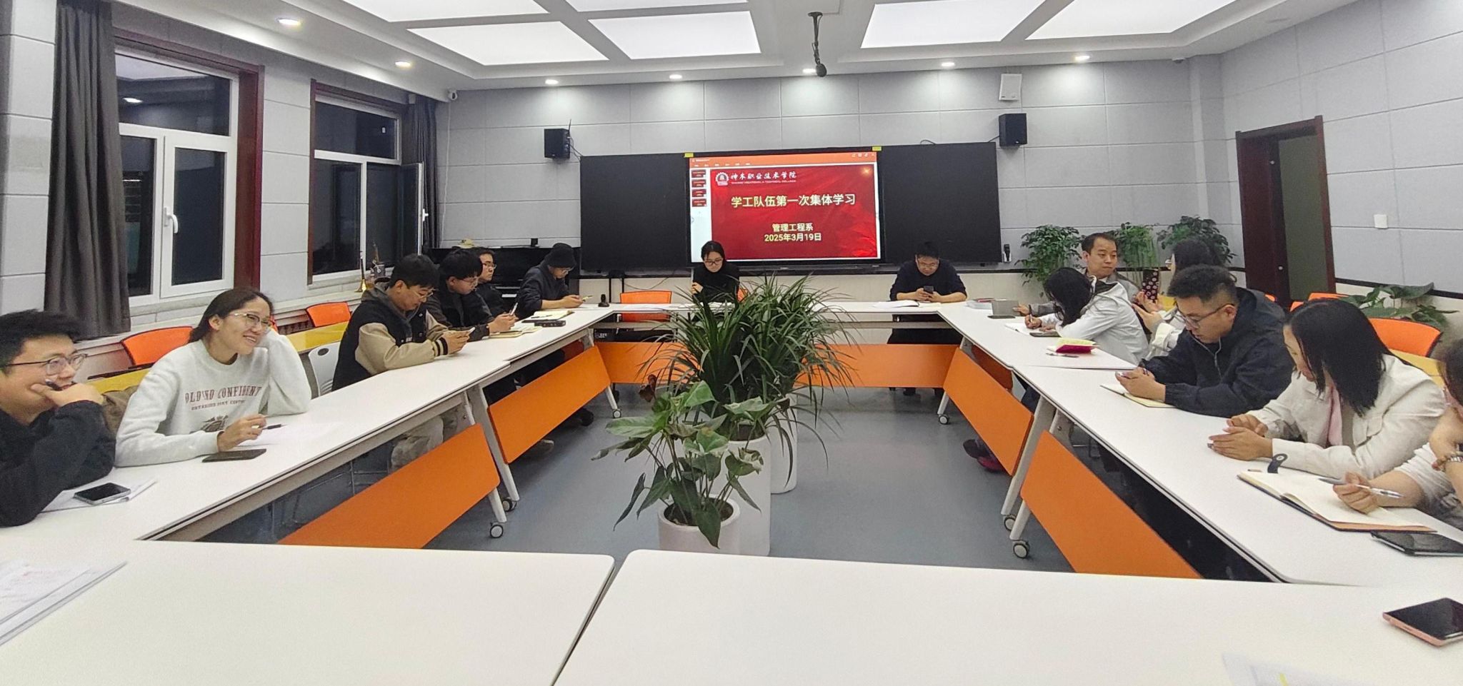 管理工程系学工科于2025年3月19日在5号教辅楼5307召开全体辅导员工作会议。会议由管理工程系学工科科长刘小鹏主持,管理工程系副主任刘小毛以及全体专兼职辅导员参会。会议围绕学生安全管理、学籍核查、就业等重点工作展开部署,并组织全体辅导员进行集体学习。