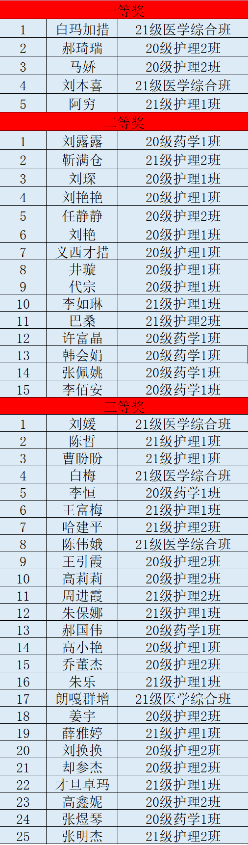 附:医护专业学生人体解剖绘图大赛获奖名单
