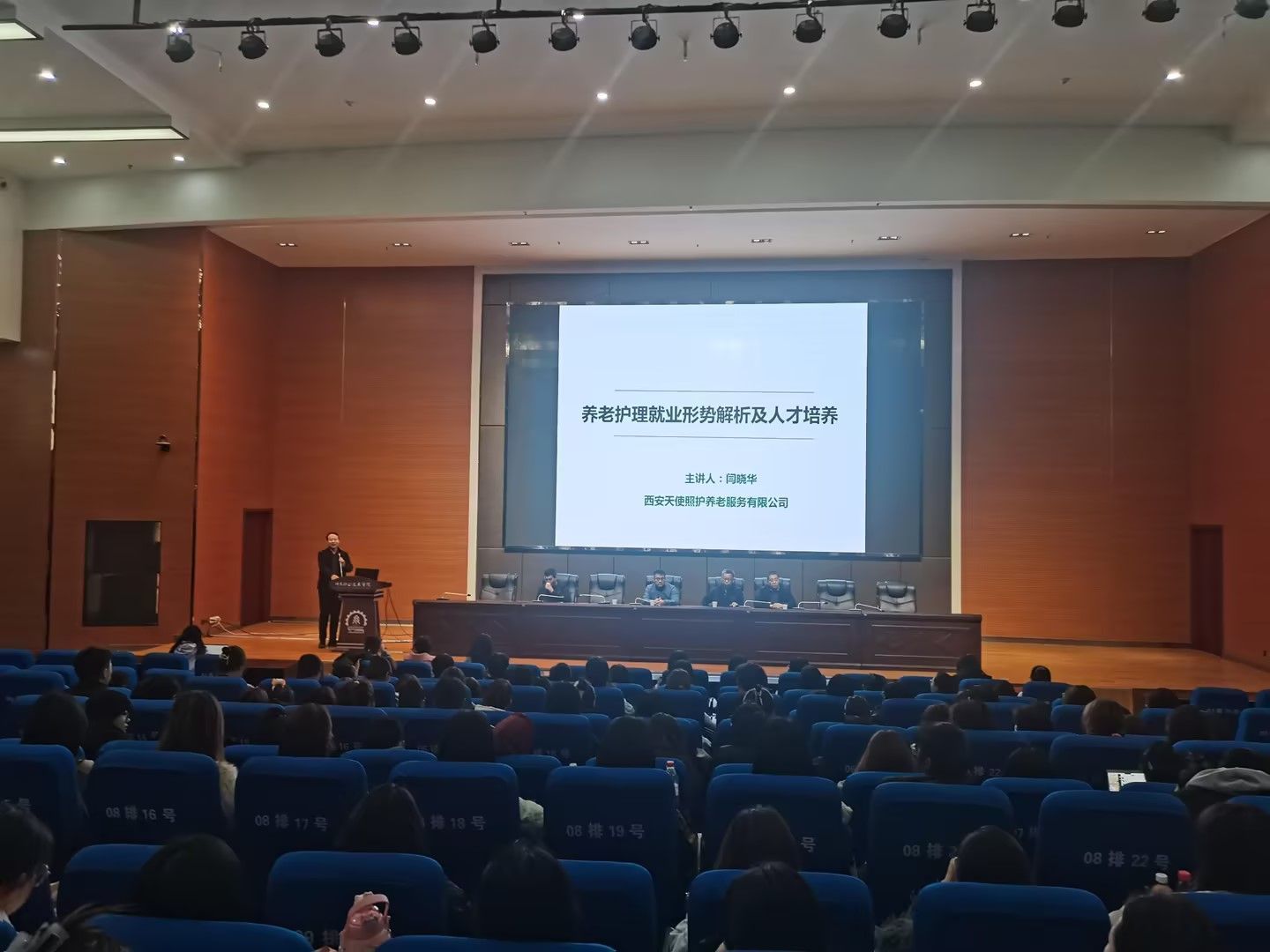 随后西安天使照护、陕西杏林普济养老服务有限公司董事及主任王涛、闫晓华、化凯及郭彬科,分别介绍了天使照护的发展历史、养老照护的发展潮流及历史背景,中国老龄产业的市场需求及国家养老照护专业的办学历史趋势等,表达了下一步希望进行多方面合作的愿望。
