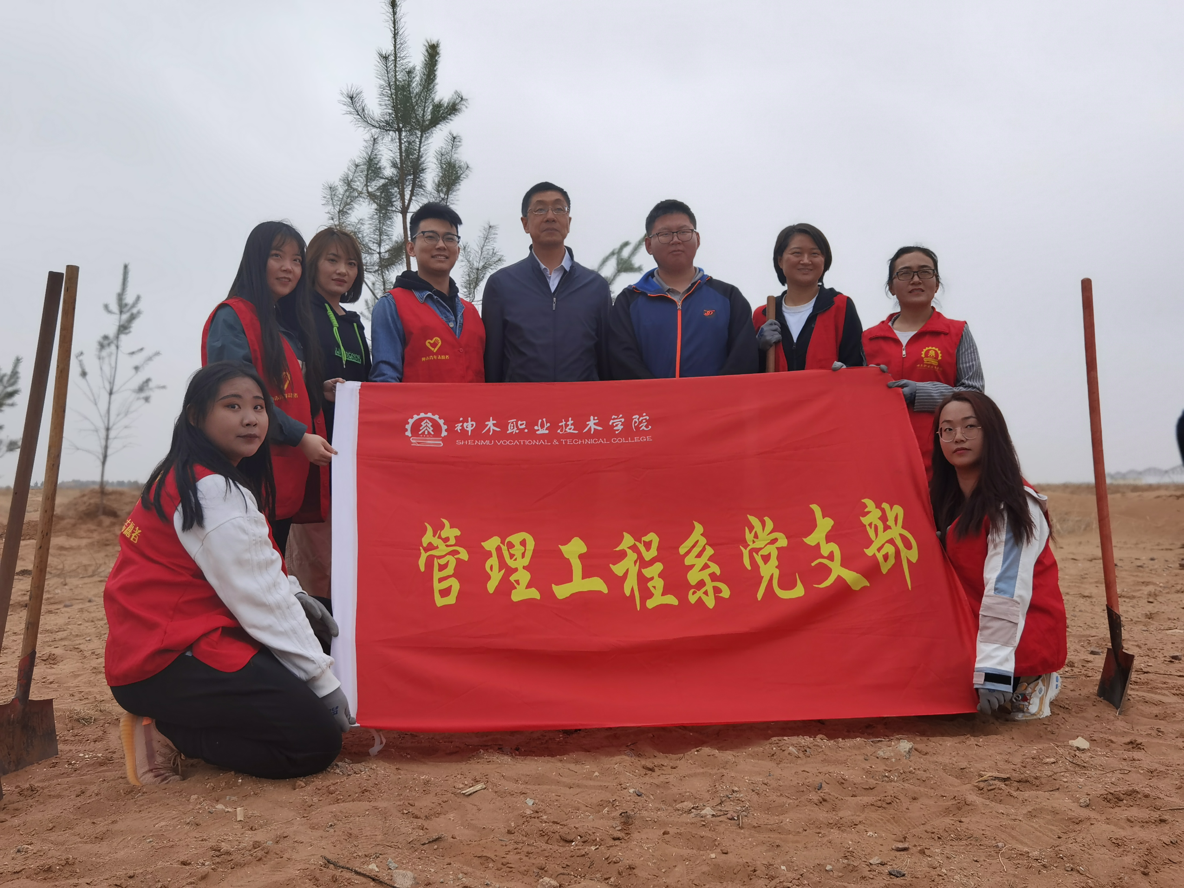 2021年422日,管理工程系党支部组织系部全体党员锦界镇圪丑沟治沙造林基地开展“学党史办实事共建绿色家园”为主题的义务植树活动,号召系部全体教师,尤其是党员同志以实际行动传承红色基因,播种绿色希望。
