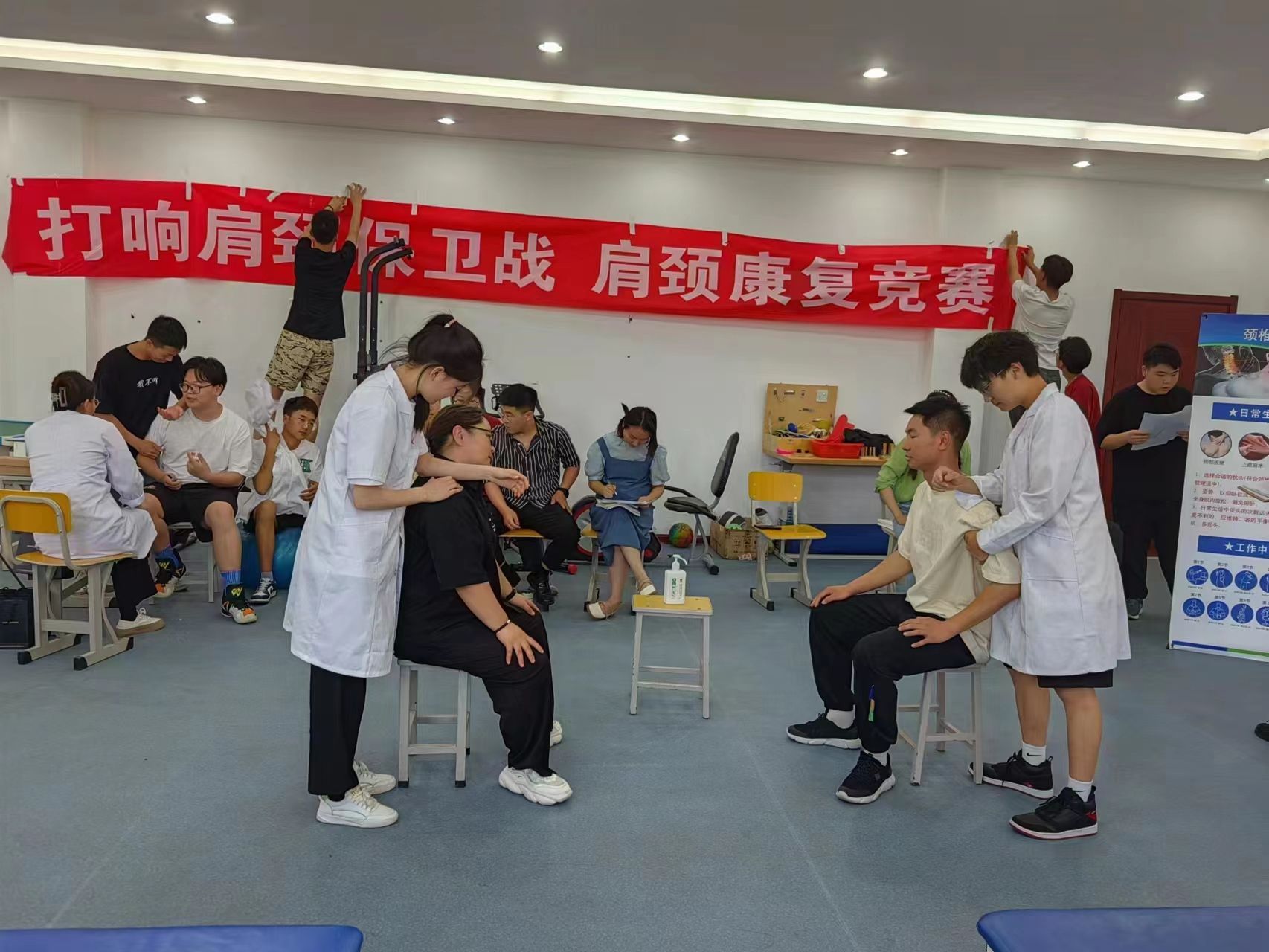 为让同学们认识到保护肩颈的重要性,进一步熟练肩颈康复,带动大家学康复的积极性,培养团队的组织纪律性。以缓解肩颈疲劳为起点,365上市公司官网管理工程系康复治疗技术专业学生于 2023 年 6 月 8 日晚在医学实训楼运动治疗室开展了一场激烈有趣的肩颈康复比赛。