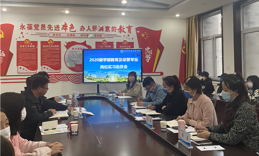 10月14日,管理工程系学前教育教研室召开20级学前、幼管岗位实习动员会。管理工程系主任高彩琴、实训继教处副主任郑海亮、学生处副处长贺安伟等出席,管理工程系教学科科长张彩花主持。