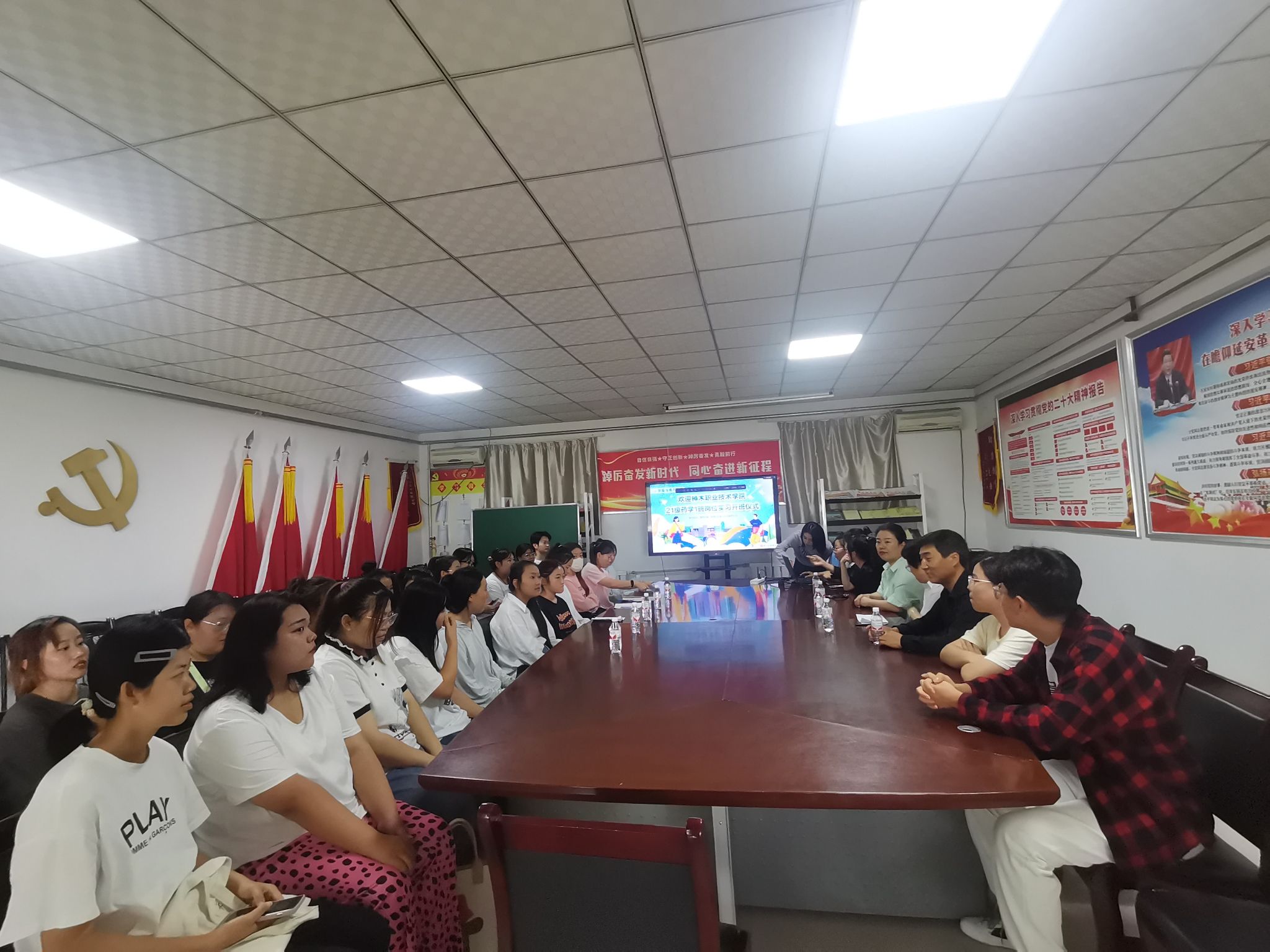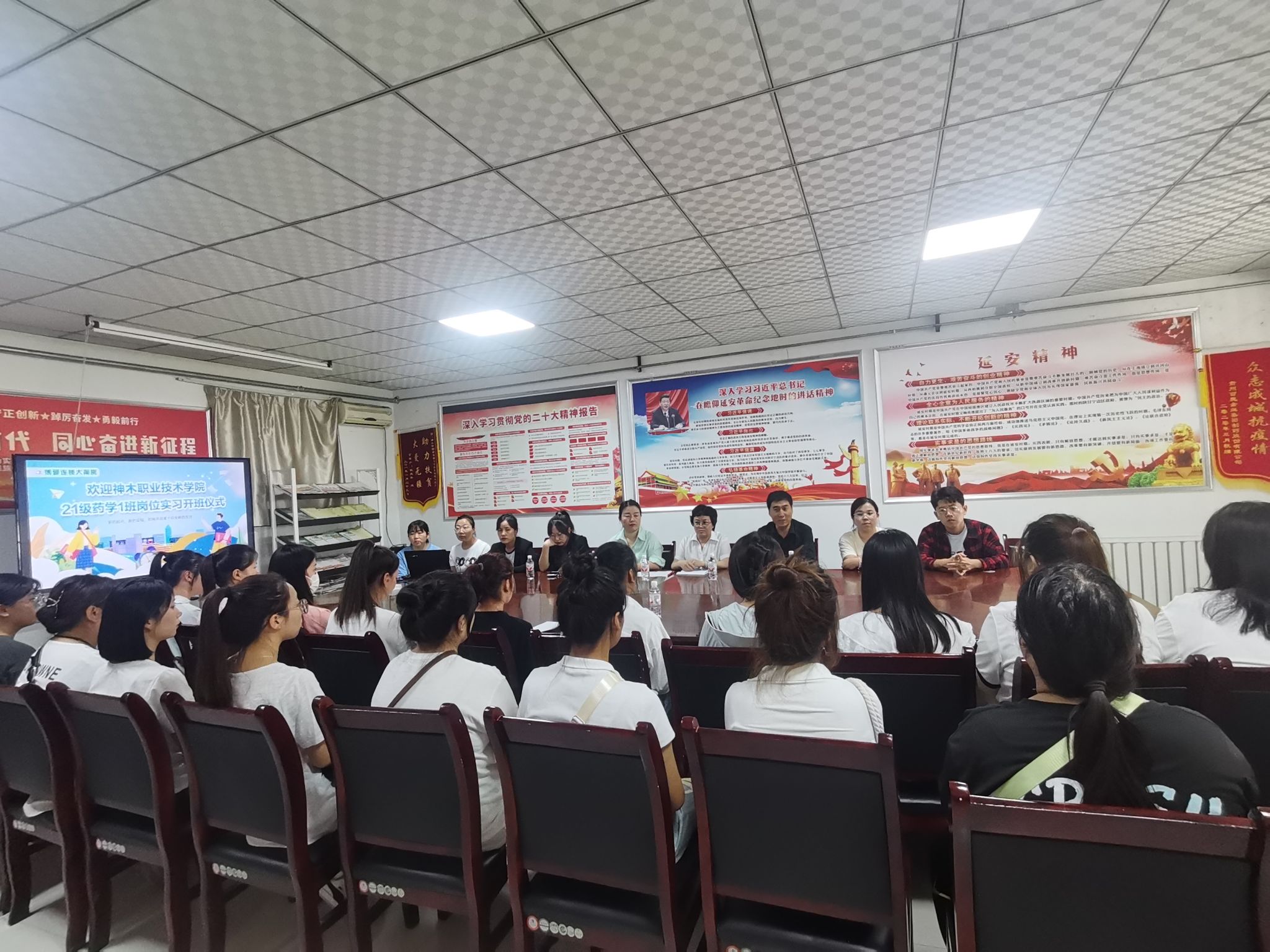 8月29日下午,管理工程系药学专业举办了21级药学班学生实习培训开班仪式,陕西博爱恒业医药有限公司总经理郭玉梅作为校外参训负责人出席了本次开班仪式,药学教研室全体老师及21级药学专业学生参加了此次开班仪式,管理工程系副主任刘树平出席会议并讲话。