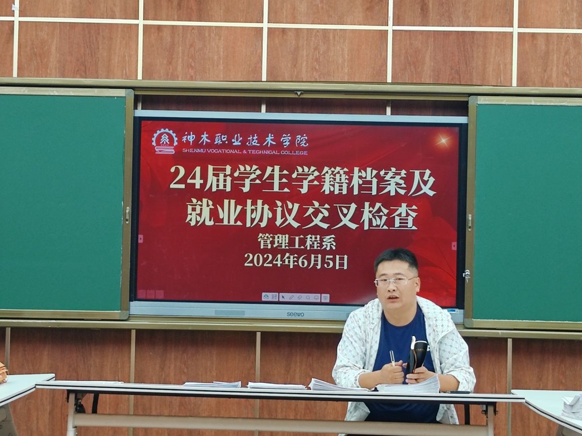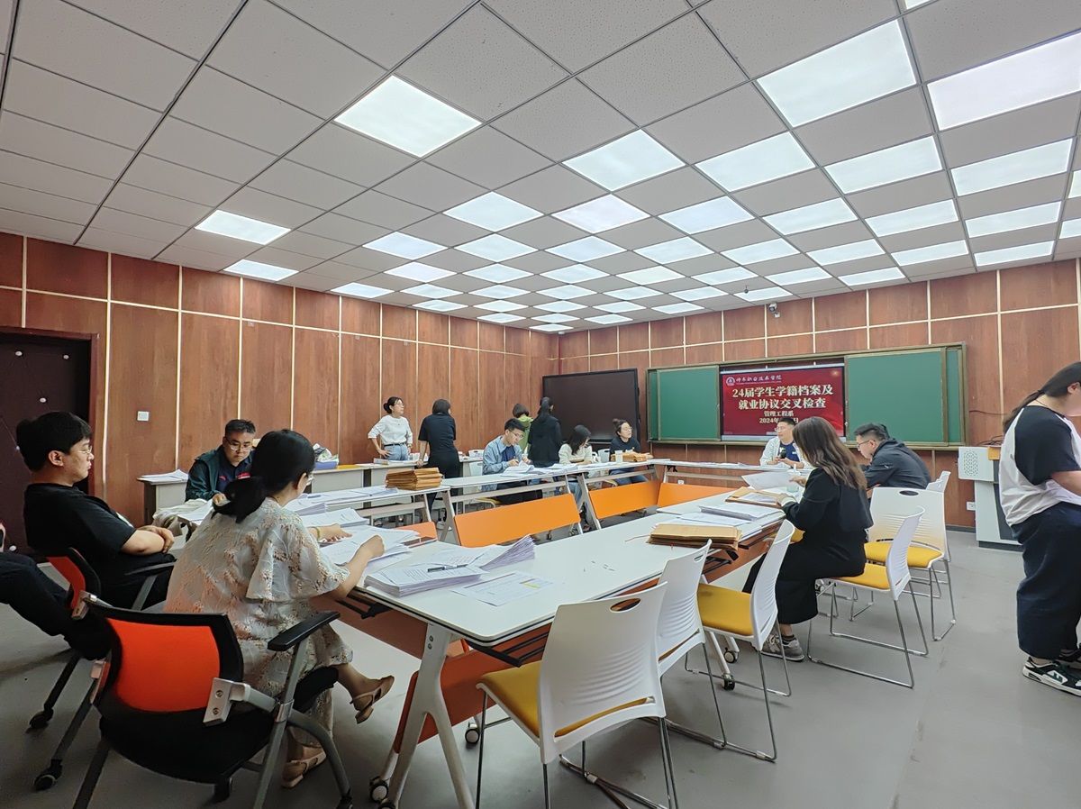 学籍档案及就业协议管理工作是学校教育教学工作的重要组成部分,是维护学校正常教育教学秩序的重要保障。为贯彻落实教育部文件精神,加强学生管理标准化和程序化建设要求,2024年6月5日,管理工程系学工科科长刘小鹏带领全体辅导员在5号教辅楼305室对2024届毕业生学籍档案及就业协议进行交叉检查。