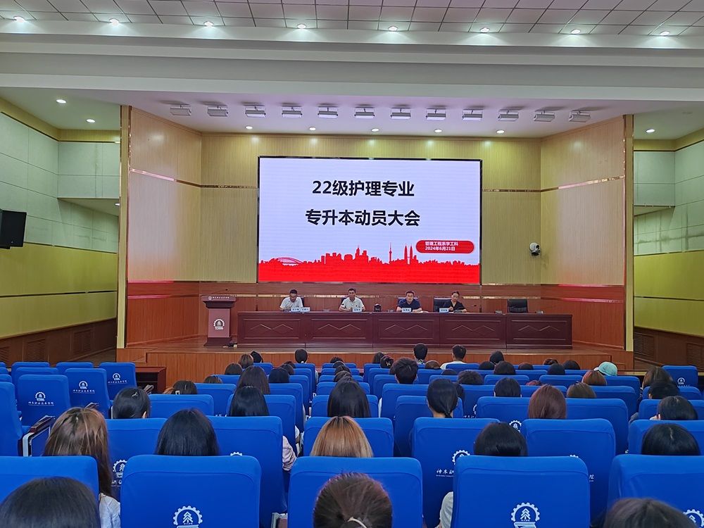 星光不问赶路人,韶华不负追梦者。为进一步激发学生专升本的斗志和决心,营造积极备考的氛围,2024年6月21日,管理工程系学工科在5号教辅楼一楼报告厅隆重举行了22级护理专业学生专升本动员大会,邀请管理工程系副主任刘树平、公共教学科孙伟忠老师和古会勤老师出席大会,管理工程系学工科刘小鹏主持本次大会,全体22级护理专业学生参加大会。