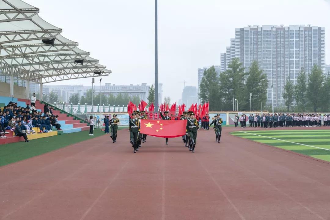 伴随着激情昂扬的音乐,国旗、校旗、裁判员和运动员方阵迈着坚定矫健的步伐,依次整齐有序地从主席台前走过,以饱满的精神和昂扬的姿态展示积极向上的风采。入场式完毕后,全体肃立,举行了庄严肃穆的升国旗仪式。