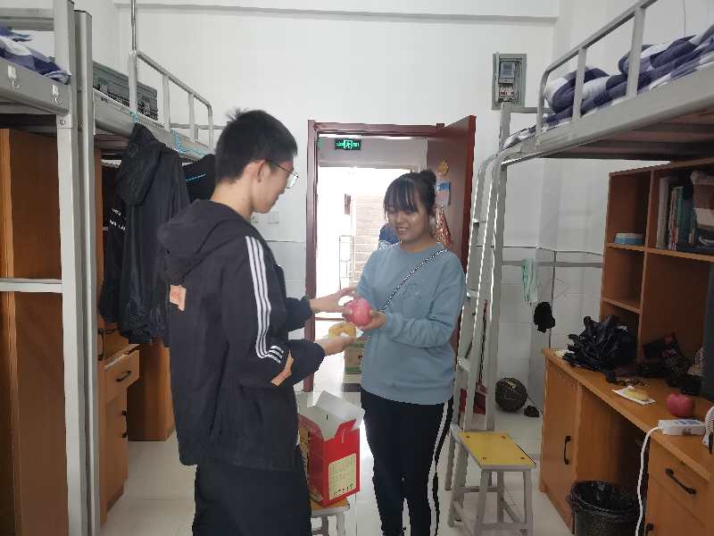 金秋送爽,丹桂飘香,在10月1日国庆中秋双节来临之际,学生处组织辅导员深入学生宿舍,走访慰问学生,与同学们共同品月饼、聊习俗、送祝福。