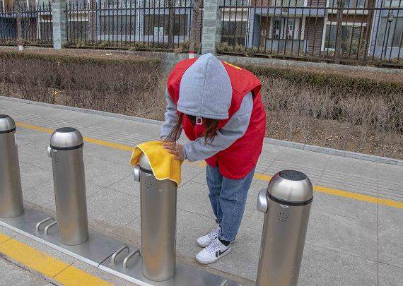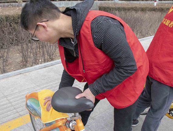 今天,志愿者们要去的地方是共享单车的停放点,志愿者们今天要做的事是清洁共享单车。清洁公共自行车可不是个轻松的事,志愿者们也不是简单的擦一下,而是都把这当成自己的宝贝一样认真对待,每个志愿者都认认真真的,即使气温非常的低,手被冻得通红,他们也没有丝毫的怠慢,笑脸也从未消失。中途路过的市民过来询问,同学们都一一解答,市民们都夸赞:这才是当代真正的大学生!经过了志愿者们的清洁,公共自行车车身上的灰没有了,周围的垃圾也都不见了,这时看到志愿者们最灿烂的笑容。