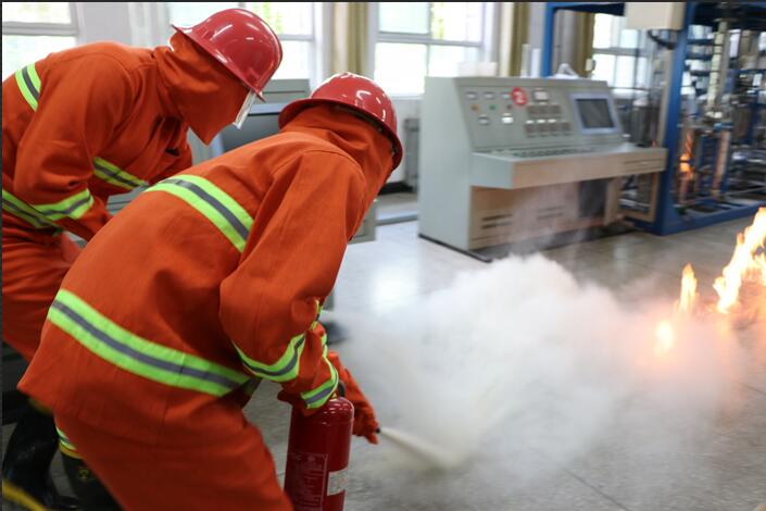 为贯彻落实中省关于安全生产工作重大决策部署和2019年教育系统“安全生产月”和“安全生产万里行”活动部署切实增强师生安全意识,着力提升安全素质,6月28日下午,我院实训-继教处、安保处、化工-电力工程系在实训楼化工实验实训室共同组织开展了首届危险化学品事故应急预案演练活动。出席本次活动的有我院副校长王慧如、校长助理王宝生教授、特邀嘉宾神木市应急管理局安委办副主任史向刚、安保处副主任杨志德、实训处副主任王笑。化工-电力工程系50余名师生参与了本次演练活动。