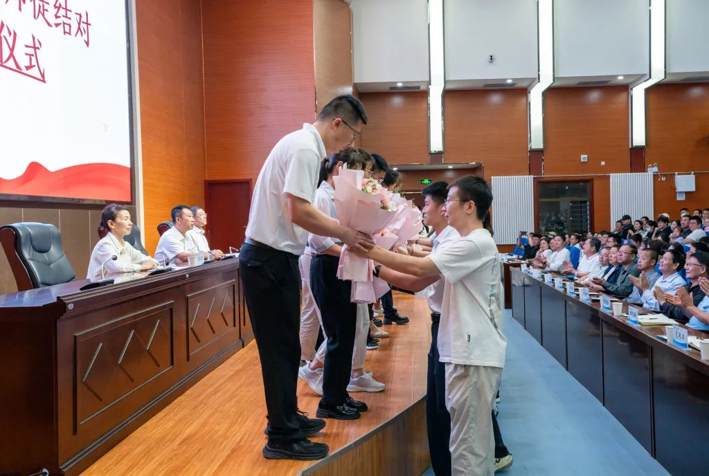 为促进学校年轻教师迅速成长,发挥学院骨干教师的示范和带动作用,在此次大会上举行了“青蓝工程”师徒结对拜师仪式,活动现场20位资深老教师与20位新教师正式结为师徒关系,新教师为老教师献上鲜花并行拜师礼,这既是学校对骨干教师教学业务的肯定,也是对新教师进步与成长的期许。拜师仪式结束后,新教师代表张龙带领全体教职工进行宣誓。