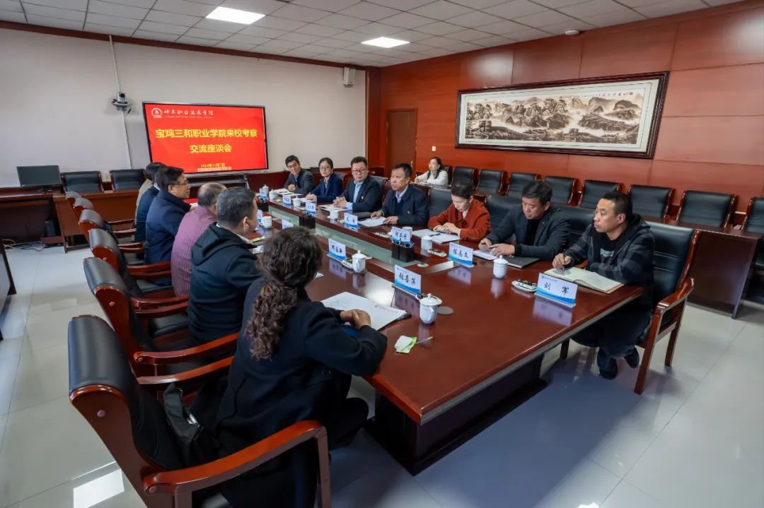 11月7日,宝鸡三和教育集团董事长王建民、宝鸡三和职业学院书记于长生一行来我校考察调研,副校长郭亚芳、相关部门负责人出席座谈会,会议由党委书记艾国主持。