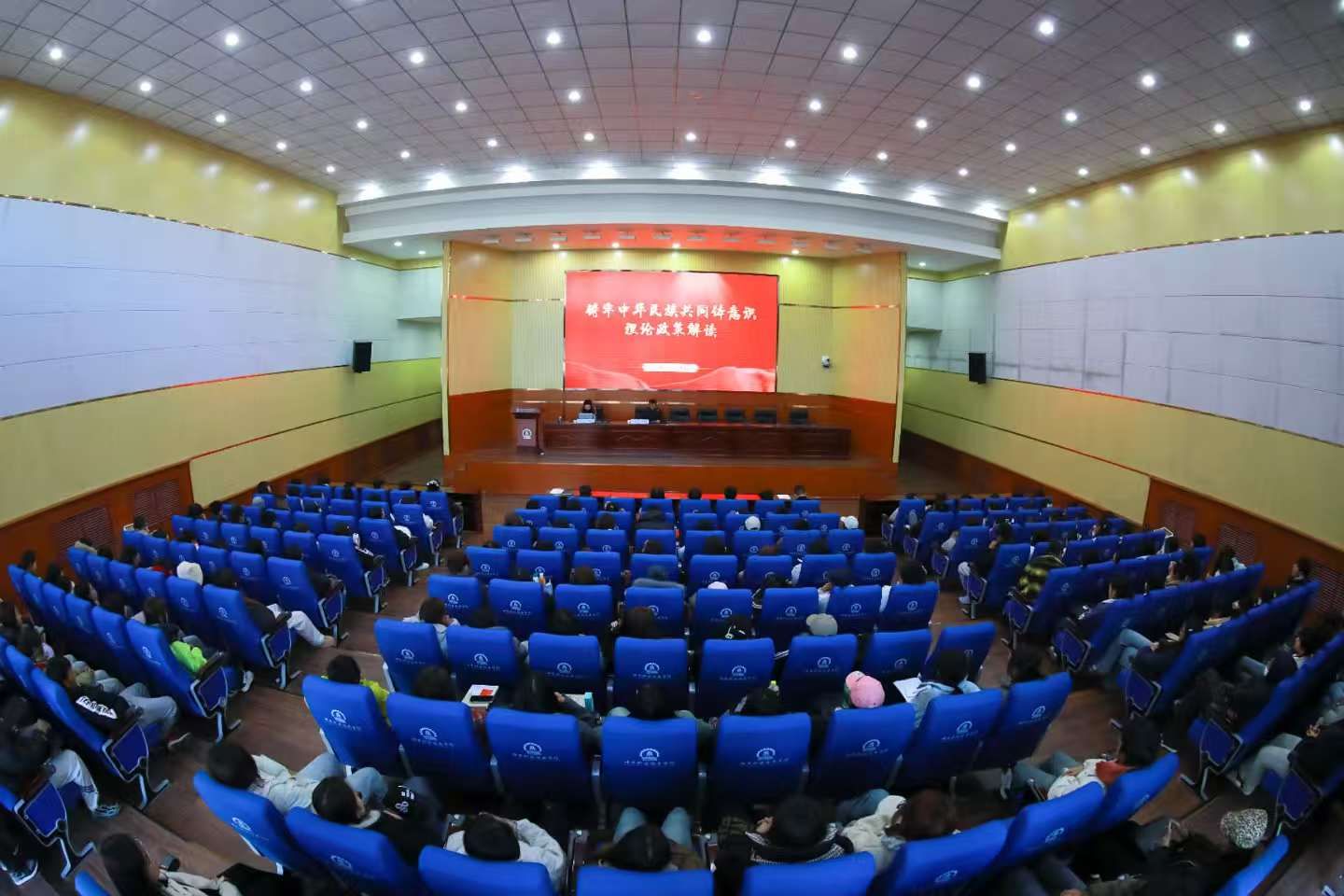 为深入学习和宣传贯彻习近平总书记关于加强和改进民族工作的重要思想,增强大学生对中华民族共同体的认识与认同。11月28日,学校在5号教辅楼一楼报告厅举办“中华民族共同体意识研究深入解读铸牢中华民族共同体意识的理论内涵与政策导向”专题讲座。少数民族学生及带班辅导员参加。