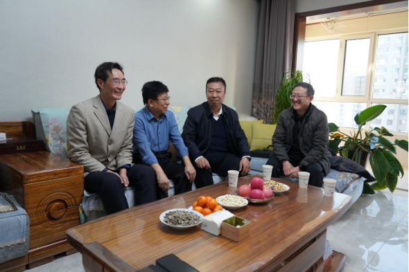 在走访慰问中,艾国与老同志们促膝相谈,嘘寒问暖话家常,关心他们的身体情况和生活状况,向他们介绍了2024年学校各项事业所取得的成绩和未来发展规划,介绍学校过去一年工作成就,对老同志们为学校事业发展作出的重要贡献表示衷心感谢,希望老同志们多提宝贵意见和建议,继续支持和帮助学校事业不断向前发展。