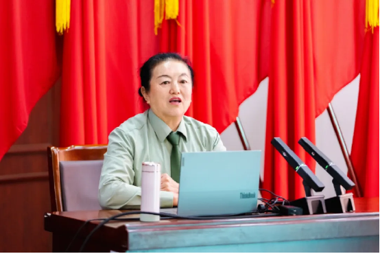 随后,治沙连第一任文书兼卫生员贺莎莲为大家带来一堂意义非凡的党课。她深情回顾了治沙连从 1974 年成立至今,几代女民兵接续奋斗的治沙历史。面对恶劣的自然环境,女民兵们风餐露宿、不畏寒暑,用铁锹挖、用肩膀扛,克服了条件和技术落后等重重困难。她着重阐述了“自力更生、艰苦奋斗,乐观向上、无私奉献,敢于担当、持之以恒”的治沙精神,强调这种精神不仅是治沙成功的关键,更是新时代党员干部应当传承和发扬的宝贵财富。