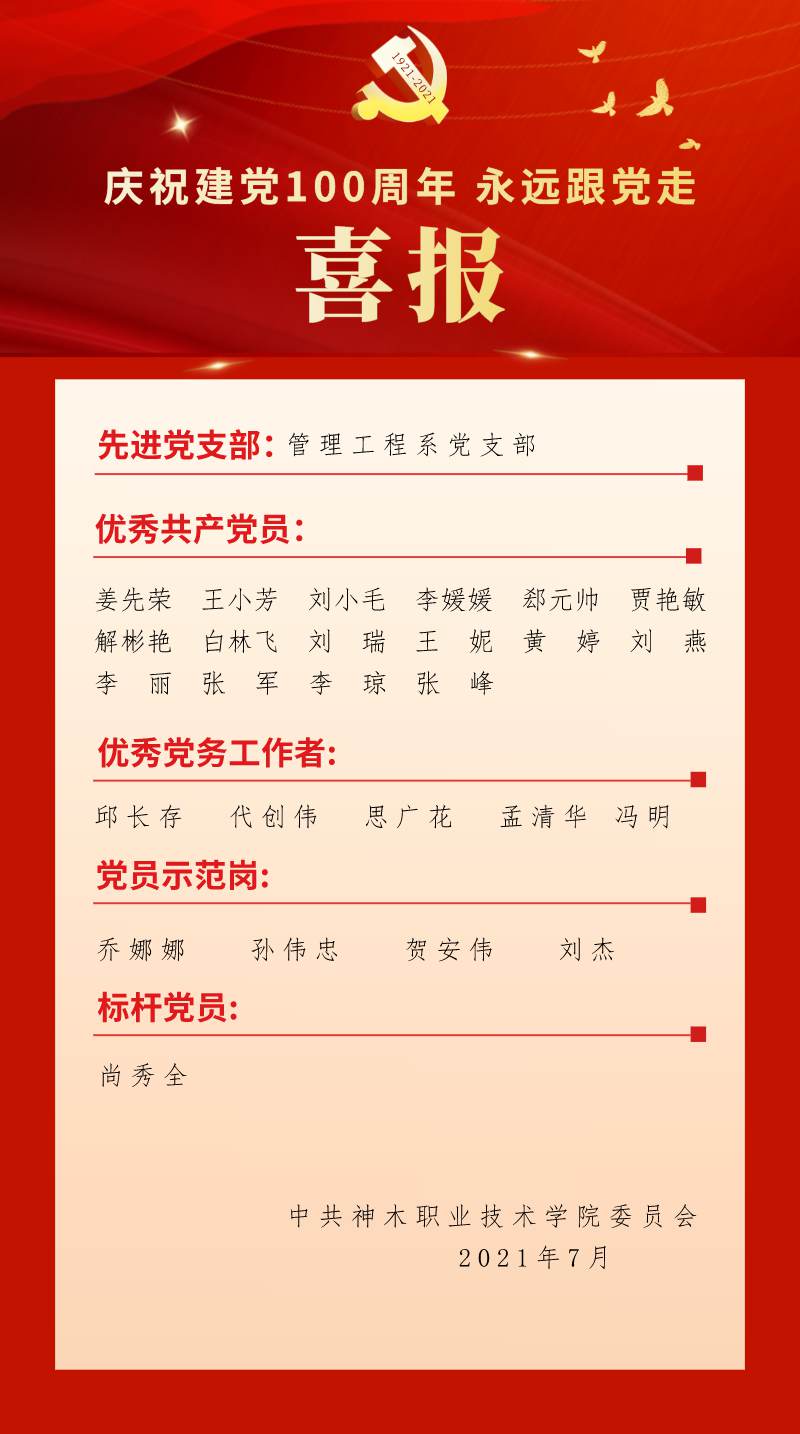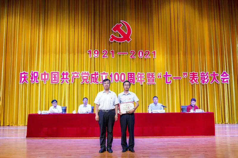 现场播放学院党员师生代表录制的“对党说句心里话”和各党支部“重温入党誓词”视频后,大会在庄严的国歌声中拉开序幕。会上,表彰了王小芳等16名优秀共产党员、邱长存等5名优秀党务工作者、孙伟忠等4名党员示范岗、尚秀全等1名标杆党员和管理工程系先进党支部;对“学党史、知党情、跟党走”主题征文比赛《执念如花守初心》等14篇优秀征文进行表彰。与会领导为所有受表彰的优秀个人、先进集体代表颁发奖牌、荣誉证书。