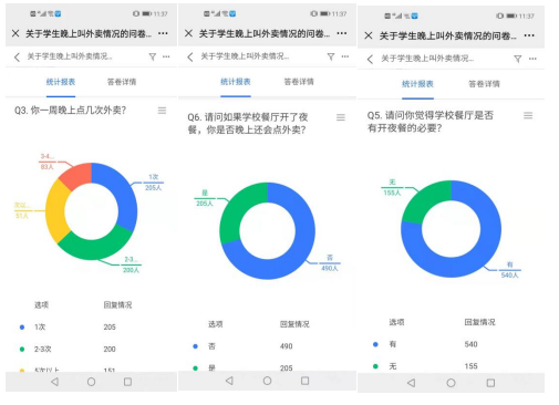 针对上周值周检查反馈的关于学生晚上点外卖较多的情况,学生处高度重视,立即行动。3月22日进行《关于学生晚上叫外卖情况》问卷调查,3月25日共收回有效调查问卷695份,并及时将调查结果反馈至后勤处。问卷显示每周晚上点外卖3次以上占比36.62%,其中因晚餐没吃饱点外卖占比65.59%,认为学校有必要提供夜餐的占比77.7%。另外,学生处还要求各系加强学生饮食健康和安全教育,引导学生在学校餐厅就餐。