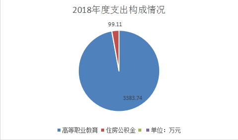2018年度一般公共预算财政拨款支出3482.85万元,按政府功能科目分类:科目编码2050305,科目名称:高等职业教育,全年支出3383.74万元;科目编码:2210201,科目名称:住房公积金,全年支出99.11万元。
