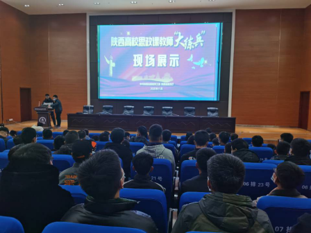 为全面贯彻落实学习习近平总书记在学校思想政治理论课教师座谈会上的重要讲话精神,更好的响应省委教育工委号召,切实提升教师队伍水平,提高省级展示教学水平。2020 年陕西高校思政课教师“大练兵”省级展示活动在西北大学太白校区举行,我校教务处于11月12日上午组织全校师生在图书馆2楼报告厅观看2020年陕西高校思政课教师“大练兵”省级现场展示活动。