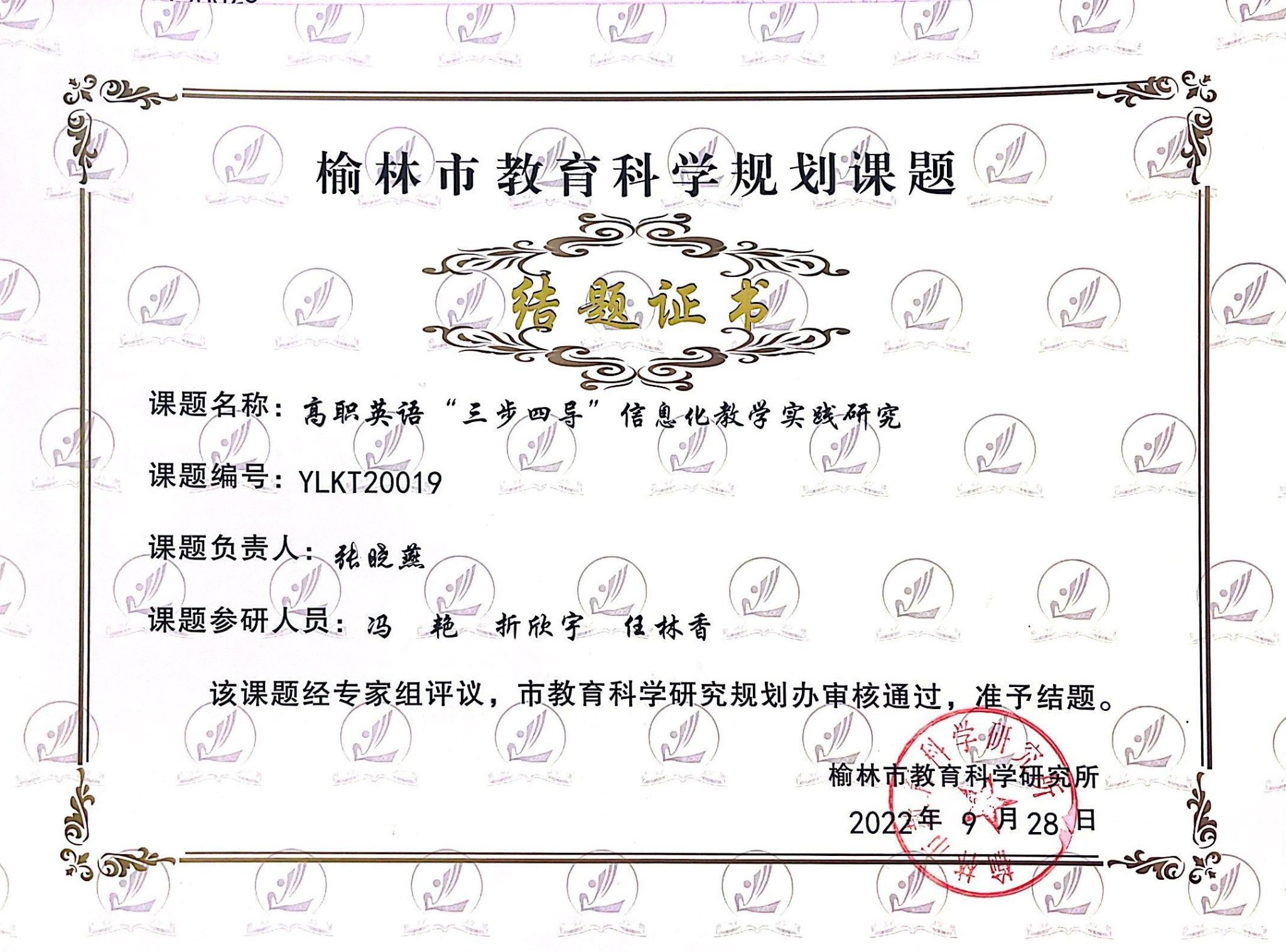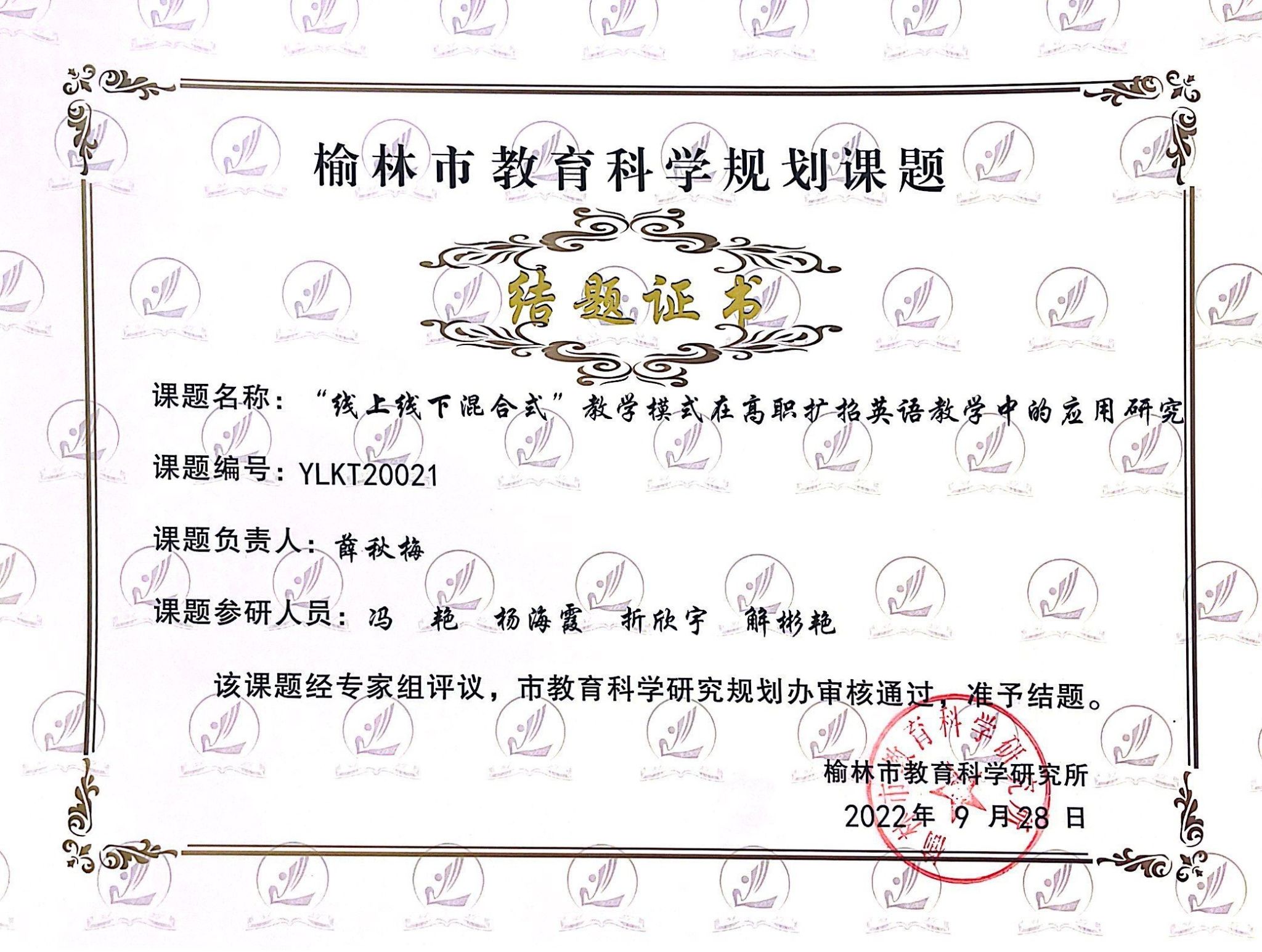 2022年榆林市教育科学规划课题结题已经结束,希望我校教师在今后的教学工作中,继续发扬刻苦钻研精神,立足学科核心素养,以研促学,以研促教,推动学校教育教学的高质量发展。