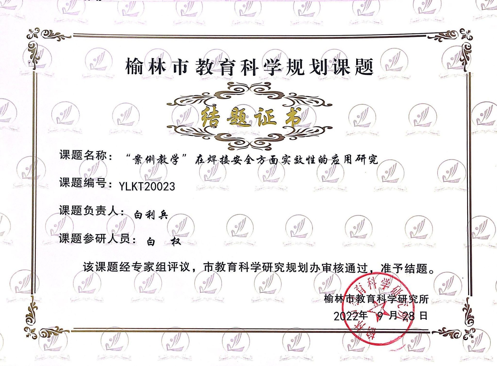 5 | YLKT20023 | “案例教学”在焊接安全方面实效性的应用研究 | 白利兵 |