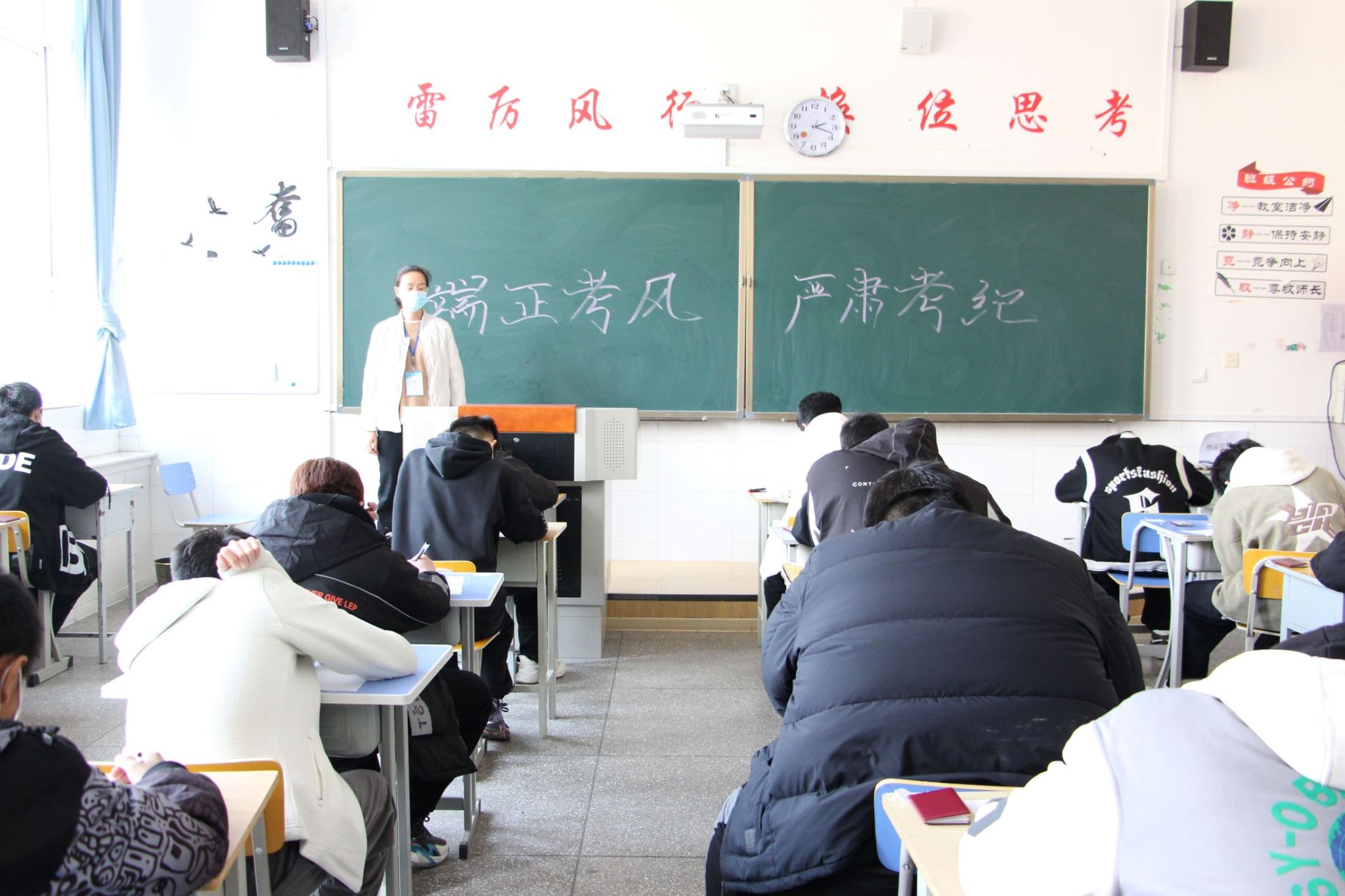 我校一贯高度重视考风考纪建设,本学期继续加大考风考纪的宣传力度,进一步端正考风,严肃考纪,为我校学生营造一个洁净、公平的考试环境。本次考试考场布置规范,监考老师尽职尽责,学生遵守考试纪律,以考风带学风,促进教学质量的全面提升。