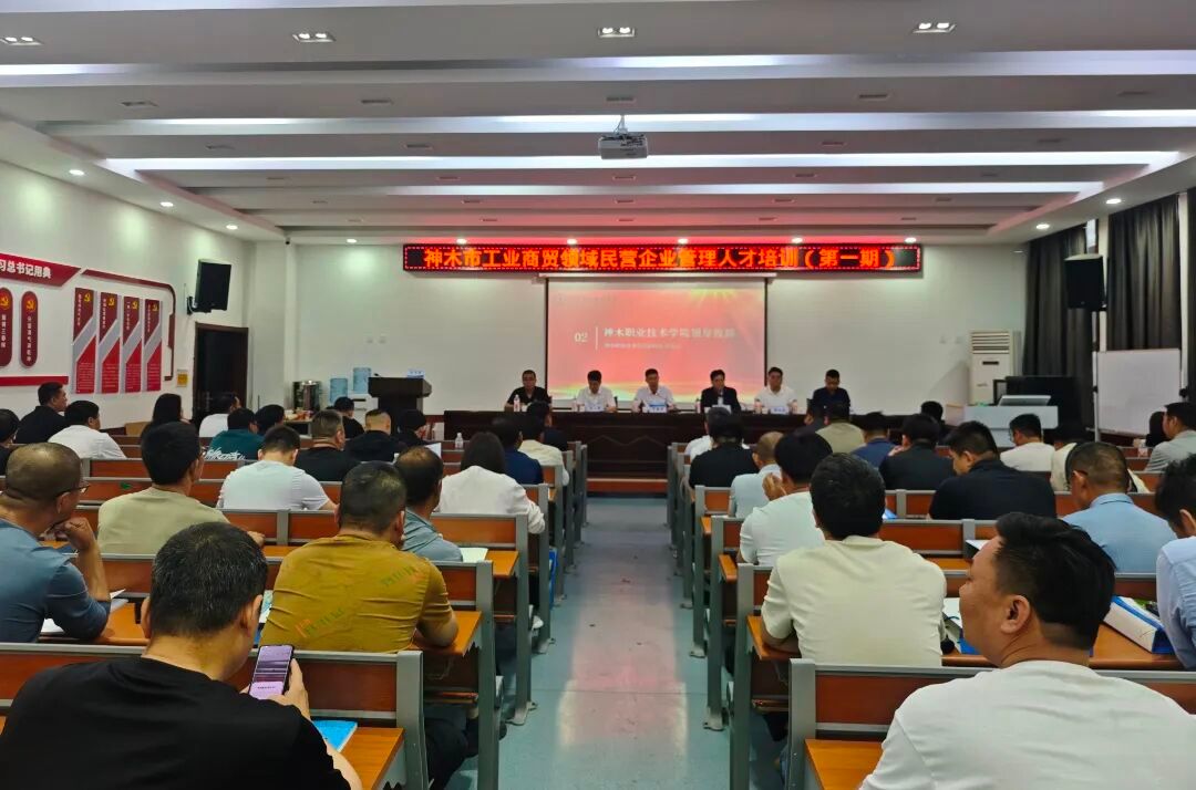 5月21日,神木市2025年工业商贸领域民营企业管理人才第一期培训班在神木职院开班,来自神木恒源煤化有限公司、神树沟商砼等90余家企业100名企业人才参加培训。