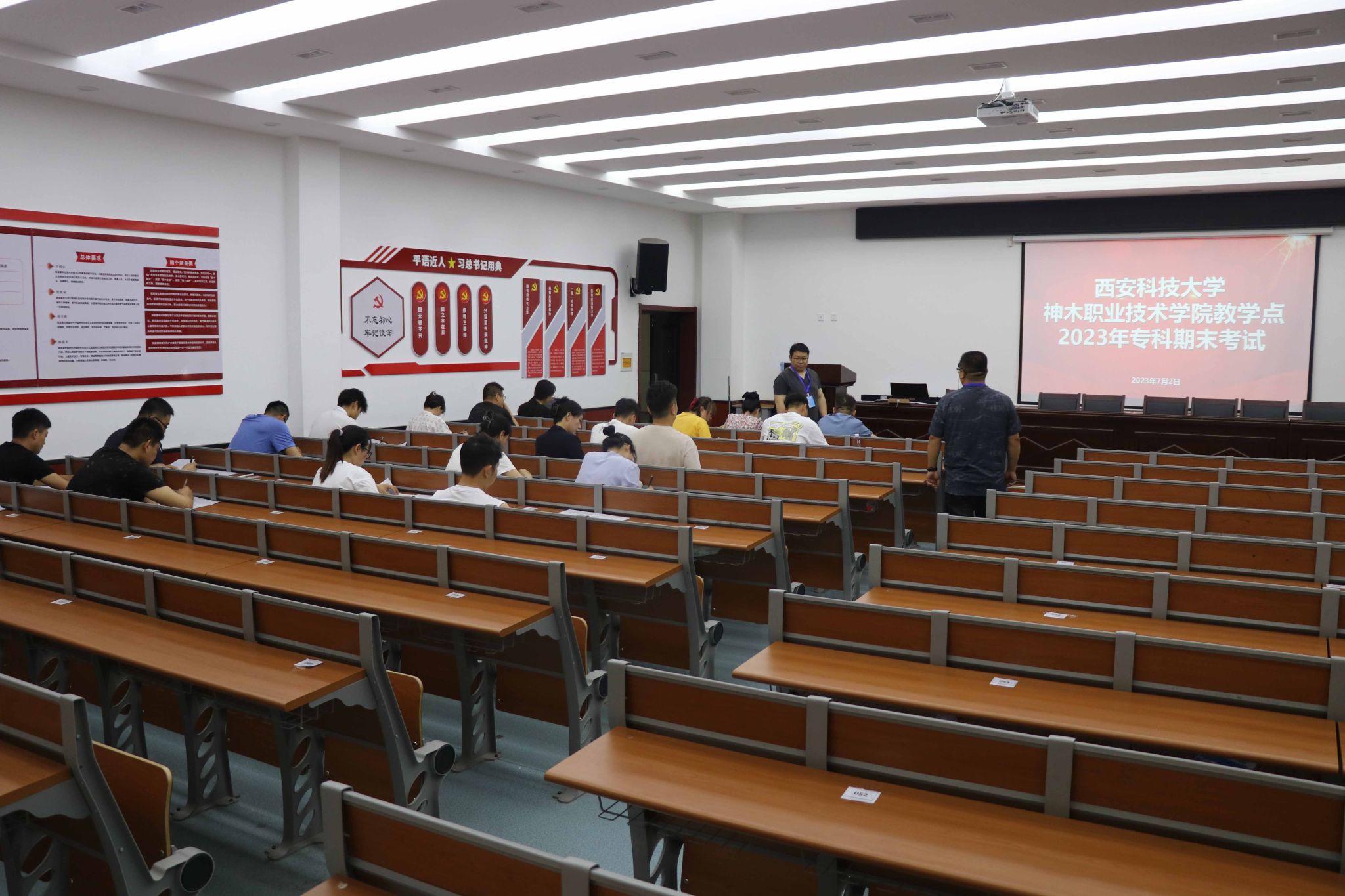 本次考试,函授站成立了2023年春季学期期末考试工作领导小组,对涉及考试中的各项工作做了部署,全体工作⼈员,监考老师各司其职。考前,实训继教处全体⼈员开始组织各课程试卷提交、打印、分班整理,印发了《2023年春季学期西安科技大学365上市公司官网函授站期末考试秩序册》,编排了期末考试安排,对考场布置做了要求,对考风、考纪进行宣传;班主任做好学生期末考试诚信应考动员和宣传工作,保证考试规范、有序进行。