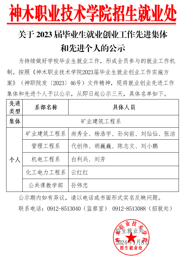 关于2023届毕业生就业创业工作先进集体和先进个人的公示