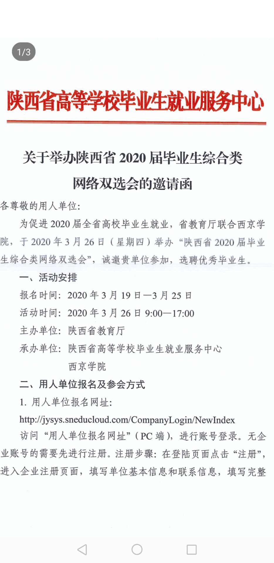 附件:关于举办陕西省2020届毕业生综合类网络双选会的邀请函