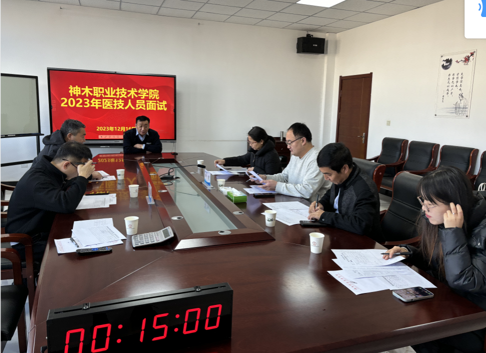 12月16日上午,面试考核在1号行政楼409会议室举行,根据应聘人员报名岗位及所学专业不同,主要从专业知识、实践技能、应变能力及自我认知等方面对应聘人员进行综合考评。医教人员面试形式为15分钟微课堂+答辩,医技人员面试形式为15分钟述职+答辩。