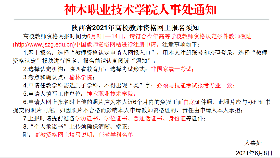 关于陕西省2021年高校教师资格网上报名须知