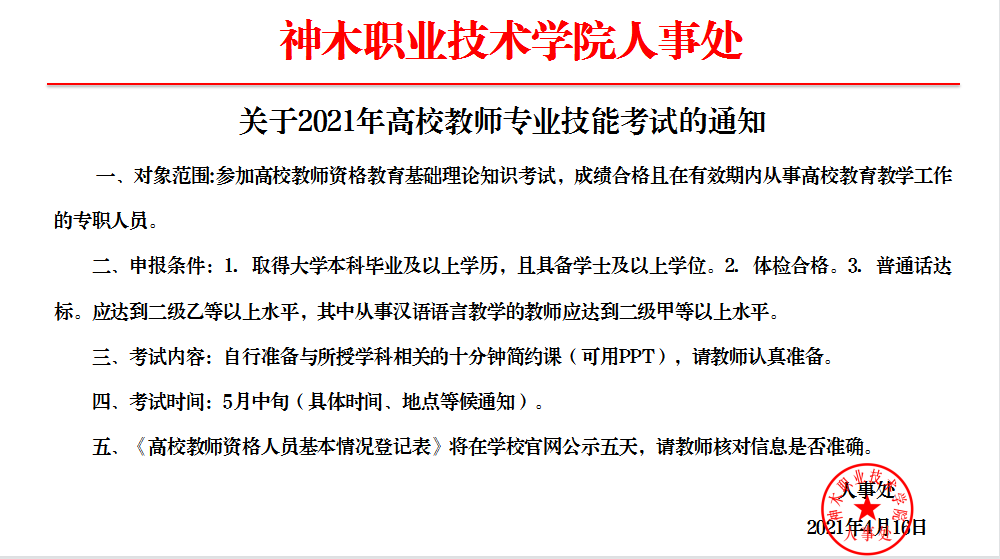 关于2021年高校教师专业技能考试的通知
