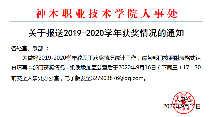 关于报送2019-2020学年教职工获奖获奖情况的通知