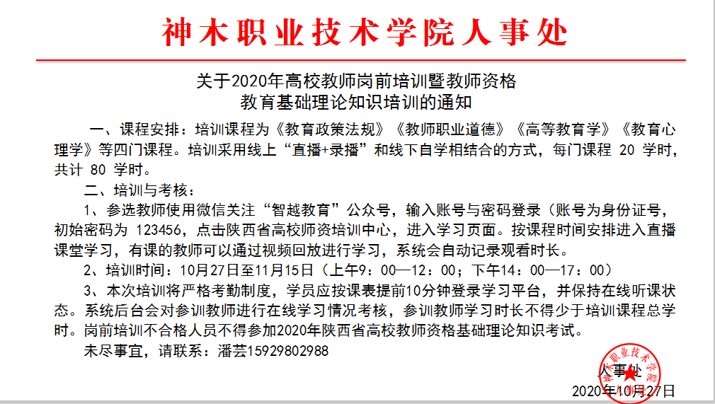 关于2020年高校教师岗前培训暨教师资格教育基础理论知识培训的通知