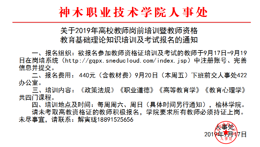 关于2019年高校教师岗前培训暨教师资格教育基础理论知识培训及考试报名的通知