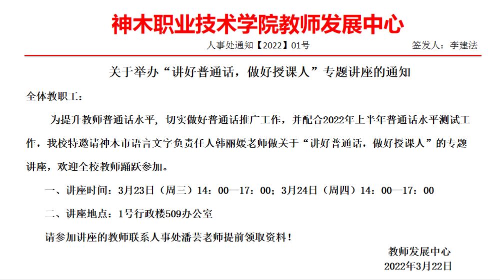 关于举办“讲好普通话,做好授课人”专题讲座的通知