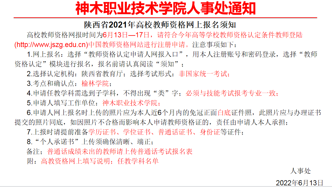 关于陕西省2021年高校教师资格网上报名的通知