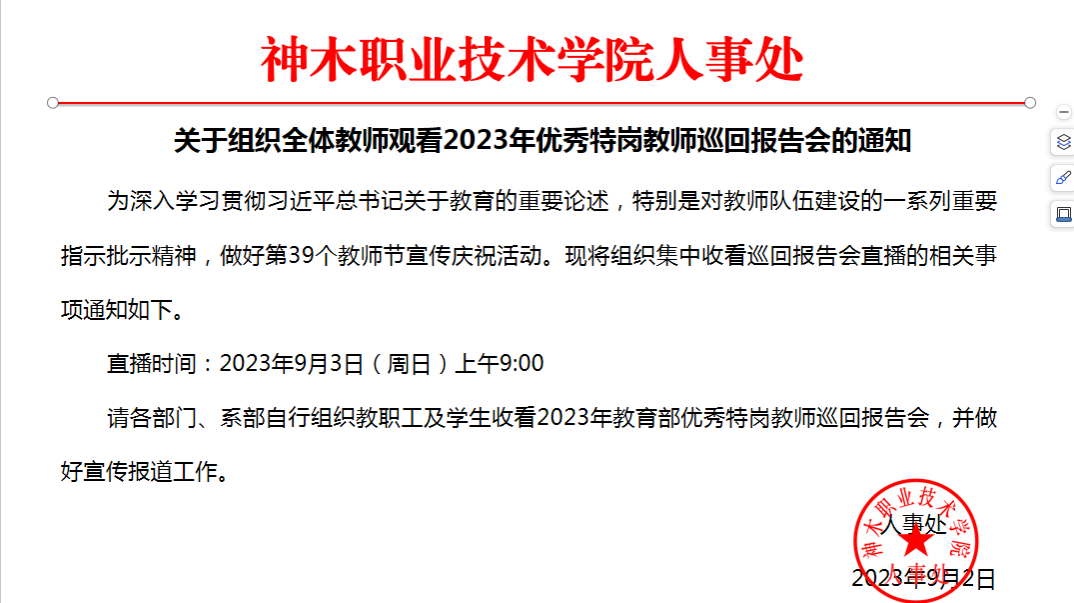 关于组织全体教师观看2023年优秀特岗教师巡回报告会的通知