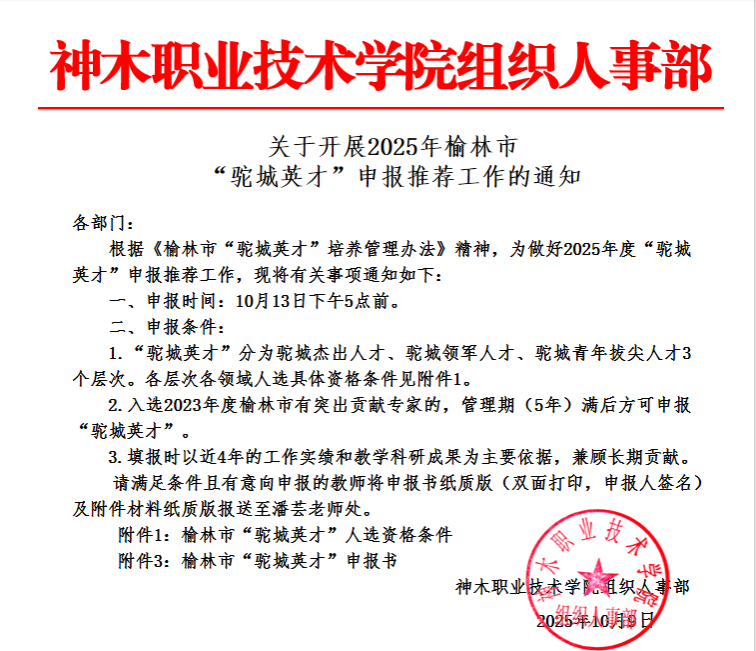 关于开展2025年榆林市“驼城英才”申报推荐工作的通知