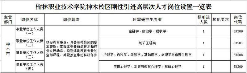 附:榆林职业技术学院神木校区刚性引进高层次人才岗位设置一览表