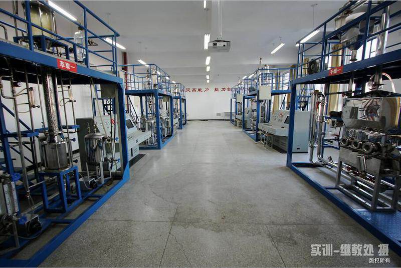 本实训室主要是为满足我校化工电力工程系应用化工技术、化工装备技术、及煤炭深加工与利用专业的学生进行萃取和干燥实训而建设的。实训装置模拟化工企业脉冲萃取和循环流化床干燥设备。学生可通过操控台实现脉冲萃取和循环流化床干燥自动控制。装置工艺流程设计和设备配置严格按照实际生产情况进行,能够通过操作控制生产出符合要求的干燥和萃取产品,实现了校内实训与企业生产的最紧密化衔接。学生通过这一阶段的实训学习,能够达到化工厂萃取分离和产品干燥相关岗位的基本用工要求。