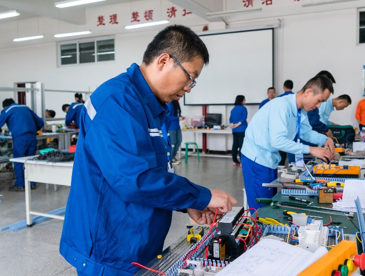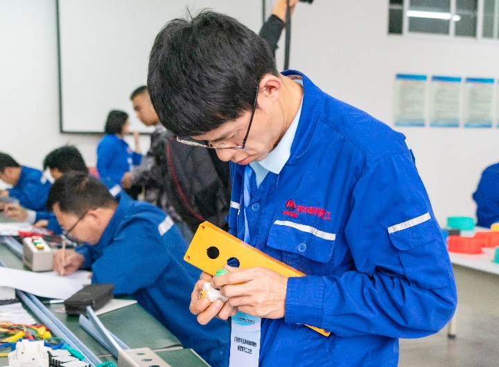 同一时间,电工比赛也在紧张激烈进行当中,选手们纷纷拿出看家本领,在比赛中大显身手。